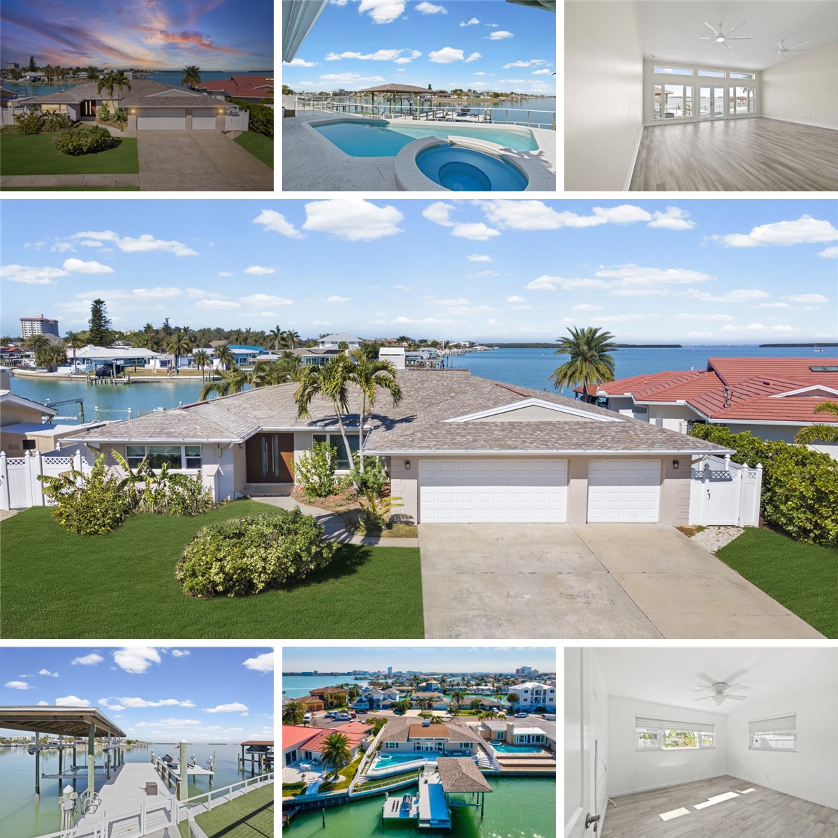Wake up to breathtaking sunrises and unwind with unforgettable sunsets from this premier deep-water estate on one of Island Estates’ most coveted cul-de-sacs in Clearwater Beach. This 4 bedroom, 3 bath waterfront residence sits on a rare lot with spectacular open water views, a covered boat lift for larger vessels, a dual PWC drive on jet ski lift, and a resort-style pool and spa designed for year round coastal living. Notably, no water entered the home during recent storms, offering added peace of mind. Inside, a bright vaulted living area with a stunning two-sided fireplace creates the perfect space for gathering and entertaining, complemented by a flowing layout, large bedrooms, wind-rated windows, and a spacious three-car garage. Whether you choose to personalize this beautiful home into your ultimate waterfront retreat or take advantage of the premier lot to build a brand new luxury residence, the opportunity is exceptional. Just minutes from world famous Clearwater Beach, enjoy powder soft sand, amazing waters, top-rated dining, vibrant nightlife, boating, fishing, and endless outdoor activities this is Florida coastal living at its absolute finest!