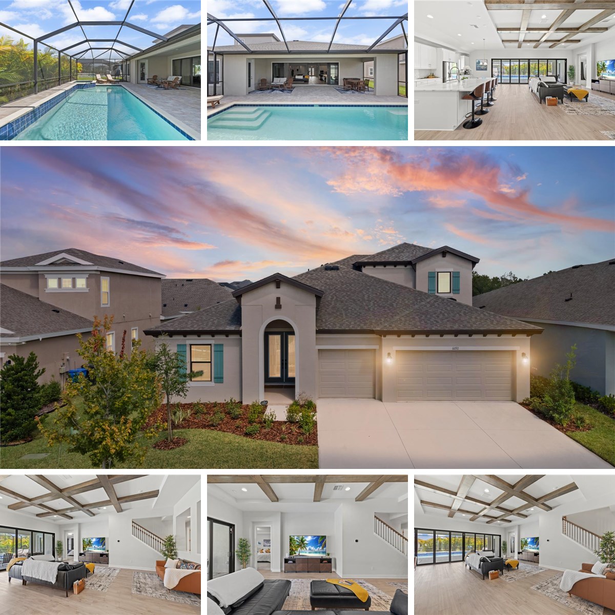 This deal just got better....PRICE REDUCED BY OVER $25K! Highly upgraded WestBay Bayshore II priced at $899,999 to reflect a true finished-home comparison to new construction, with over $100K in builder upgrades already completed. This 4-bedroom, 4-bath home also includes a private office and an upstairs bedroom, full bath, and bonus loft, offering flexibility and function well beyond a standard 4/4. A custom-built heated saltwater pool and spa, completed less than one year ago, anchors the home’s resort-style indoor–outdoor living experience. The home has been lightly lived in and meticulously maintained. Soaring first-floor ceilings and custom wood beams across the living and dining areas create immediate architectural impact. The open-concept layout flows into a chef’s kitchen featuring Sonoma Linen cabinetry, Calacatta Novello quartz countertops, stainless steel appliances including the refrigerator, an oversized extended island with integrated table seating, and luxury plank flooring throughout the main living areas. The kitchen also includes upgraded extended cabinetry and countertop space ideal for a coffee or beverage bar, with both upper and lower cabinets thoughtfully placed around the window, adding everyday functionality and visual balance. An upgraded 24-foot sliding glass door system spans the entire back wall, opening to an upgraded extended covered lanai that stretches the full width of the home, creating a seamless connection between the interior living spaces and the outdoors—ideal for entertaining and everyday living. A private office with double-door entry and tray ceiling provides a refined work-from-home or flex space, while the upgraded extended laundry room adds convenience and storage rarely found in comparable layouts. The primary suite serves as a true retreat, featuring a tray ceiling, dual walk-in closets, private access to the pool, and a spa-inspired bath with dual sinks, a soaking tub, and a walk-in shower. A guest bedroom includes a standing walk-in shower, ideal for visitors or multigenerational living. Upstairs, the home offers a private bedroom, full bathroom, and spacious loft, creating an ideal guest suite, teen retreat, or secondary living area with separation from the main level. Outdoors, enjoy a heated saltwater pool and spa with three sheer descent waterfalls that create a soothing, resort-style sound, complemented by LED multi-color lighting. The pool is controlled via the iAquaLink system and app, fully screen-enclosed, and surrounded by pavers that extend through the expanded lanai and completely around the pool deck area, creating a cohesive, low-maintenance outdoor living space designed for year-round enjoyment. Additional upgrades include a tankless gas water heater and dual HVAC systems, roof gutters, raised AC units, and a professionally installed sump pump drainage system directing water from the backyard to the street. The oversized 3-car garage features epoxy flooring and is currently configured as a home gym with commercial-grade equipment (negotiable). The entire yard has been refreshed with new underlayment and bark landscaping throughout. Located in the Waterset master-planned community with resort-style amenities, trails, and nearby dining and retail. High and dry with no flood insurance required. Move-in ready and truly exceptional.